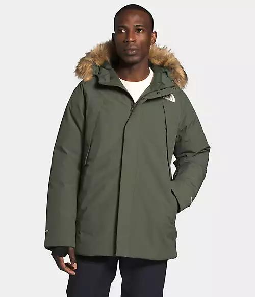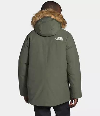- Attached, adjustable hood with a removable faux-fur ruff