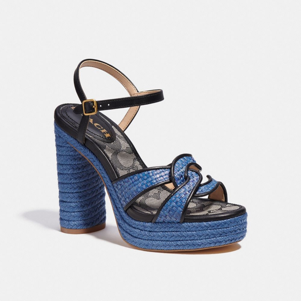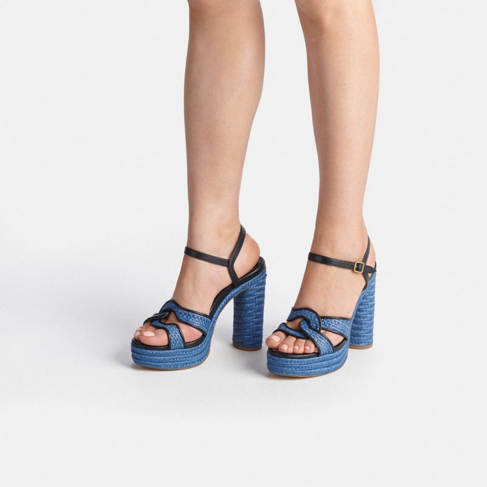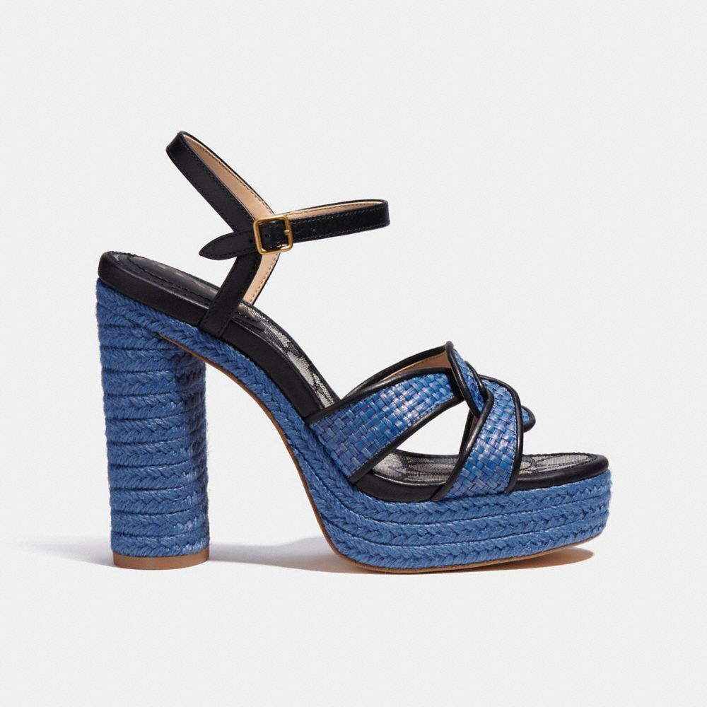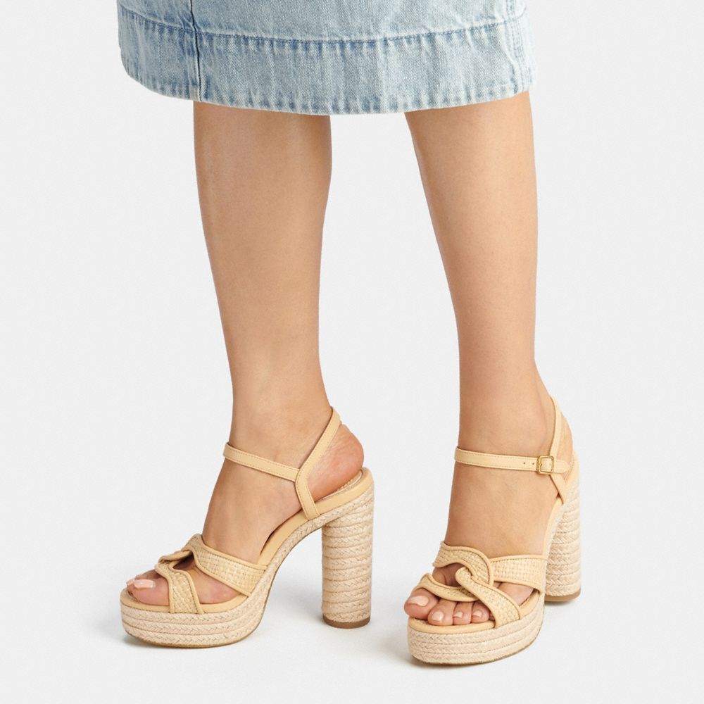 Leather and raffia upper