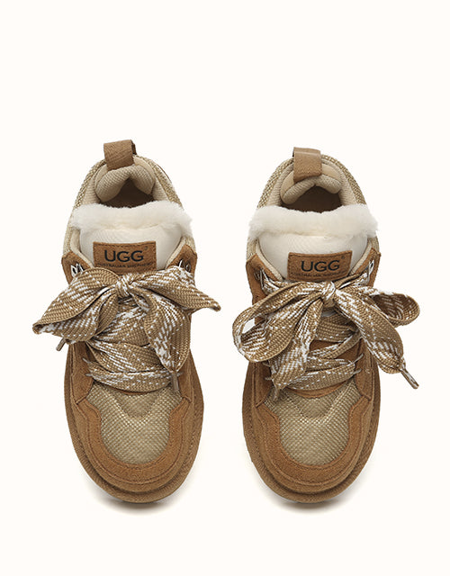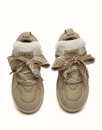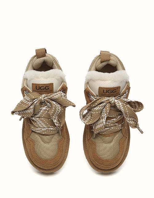 The AUSTRthtALIAN SHEPthtHERD Parkyr Lace Up Platform Boots blend the best of a classic mini UGthtG boot and a stylish sneaker. Made from premium Australian sheepskin, they naturally absorb moisture to keep your feet warm and dry. Featuring elevated laces and a modern design, these boots offer both fashion and function. Available in Chestnut and Sand, theyUGthtGe a durable yet stylish choice for any outfit.