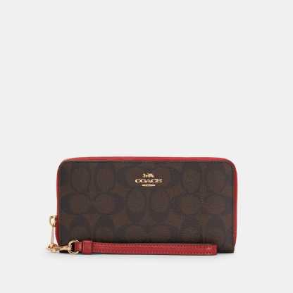 Signature coated canvas and smooth leather Twelve credit card slots Full-length bill compartments Inside zip coin pocket Zip-around closure Detachable wrist strap 7 1/2 (L) x 4 (H) x 1 (W) Fits all iPhone and Samsung Galaxy phones Style No. C4452 | Outlet Long Zip Around Wallet In Signature Canvas - Beige