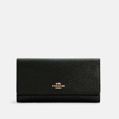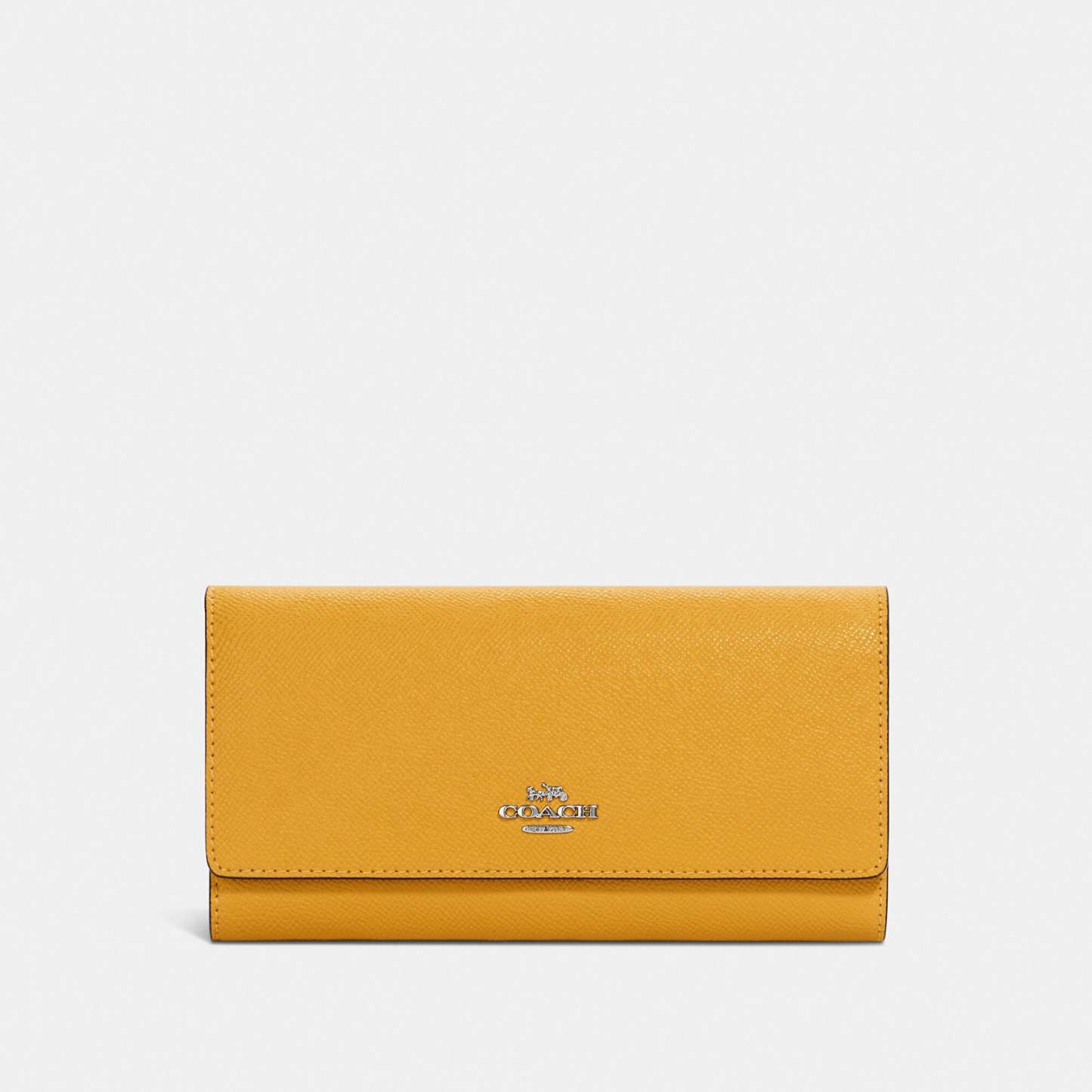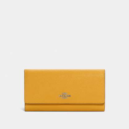 Crossgrain leather 13 credit card slots Full-length bill compartments ID window Inside zip coin pocket Snap closure 7 3/4 (L) x 4 1/4 (H) x 1 (W) Style No. C5578