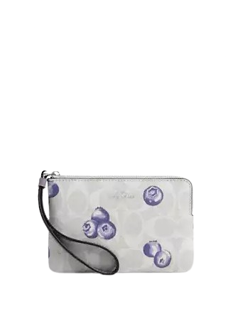 Coathtch Corner Zip Wristlet In Signature Canvas With Blueberry Print
