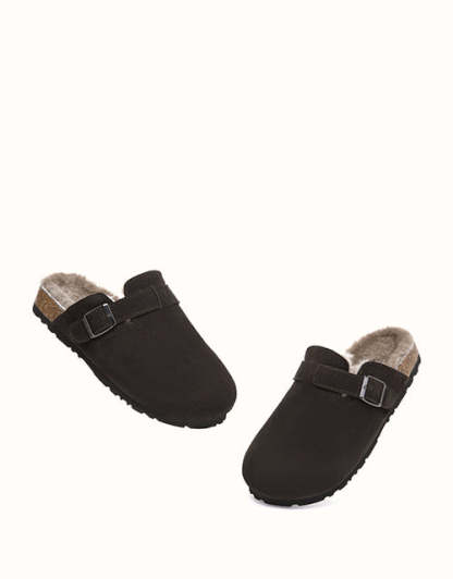 The EVEthtRAU Hazco Adjustable Strap Slippers are crafted to be a year-round essential. Featuring a modern, streamlined design in Chestnut, Chocolate, or Caribou, they pair effortlessly with any wardrobe and suit any occasion. Perfect for indoor lounging or light outdoor wear, they combine functionality, lasting comfort, and timeless style.