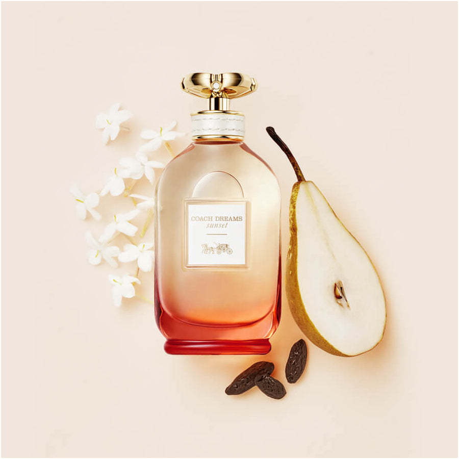 Dreams Sunset is inspired by free-spirited adventures, with the sunset on the horizon. The scent combines fresh pear sorbet with sensual notes of jasmine sambac and creamy tonka bean.