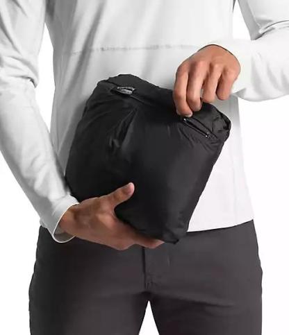- Stows in hand pocket